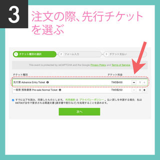 超過活動日上午 10 點 30 分未抵達的先行票將視同放棄優先入場權,請按工作人員指示至預售一般票或當日一般票隊伍末端排隊等待入場。
